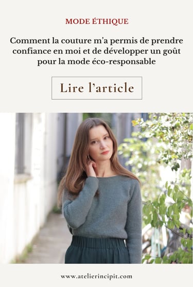 Cet article porte sur un sujet plus personnel : la manière dont la couture m’a permis d’affirmer ma personnalité, de prendre confiance en moi et de développer un véritable goût pour la mode éthique. C’est un sujet que je trouve très important et qui, je l’espère, vous motivera à vous lancer dans la couture de vos premiers vêtements !