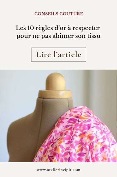 Je vous partage ci-dessous mes 10 conseils pour prendre soin de votre précieux coupon tout au long de son cycle de vie : avant la couture, pendant la couture et après la couture !